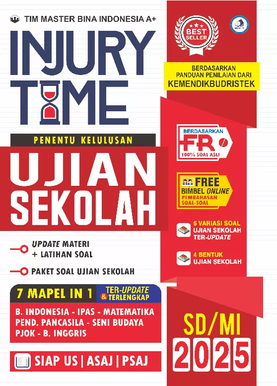 Buku ini merupakan pilihan tepat untuk mempersiapkan Ujian Sekolah SD MI karena buku ini disusun dengan berpedoman pada panduan penilaian dari kemendikbudristek Buku ini memuat mapel Bahasa Indonesia IPAS Matematika Pendidikan Pancasila Seni Budaya PJOK Bahasa Inggris Materi yang dilengkapi dengan latihan soal dan paket soal tes tertulis yang ada dalam buku ini dapat kalian gunakan untuk belajar dan berlatih mengerjakan soal soal Ujian Sekolah Selain materi dan paket soal tes tertulis ujian sekolah buku ini juga dilengkapi dengan bentuk ujian sekolah lainnya seperti portofolio penugasan maupun bentuk kegiatan lain Soal yang ada di buku ini juga memiliki variasi soal tes tertulis yang sangat lengkap yaitu pilihan ganda pilihan ganda kompleks isian singkat menjodohkan dan uraian Tersedia pula simulasi Ujian Sekolah di website video dan berbagai e book bank soal