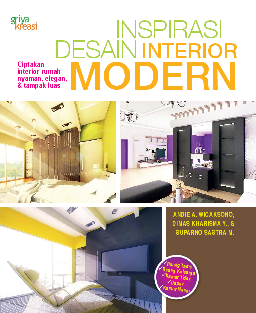 Berkembangnya zaman dan teknologi berbanding terbalik dengan ketersediaan lahan Ruang hunian kian sempit terutama di daerah perkotaan Terbatasnya luas lahan untuk pembangunan rumah mengurangi jumlah ruang Itu merubah fungsi ruang sehingga peran sebuah ruangan bertambah Selain untuk beristirahat kini penghuni juga dapat melakukan berbagai aktivitas seperti belajar menyelesaikan tugas sekolah dan kuliah bahkan ldquo berkantor rdquo di rumah Cukup menyediakan piranti laptop dan sambungan internet sambil bersantai berbelanja online internet banking memantau saham dan memahami situasi terkini Itu semua bisa dilakukan di rumah Rancangan interior berkontribusi dalam mendesain interior sesuai fungsi Rancangan yang baik tak hanya mengakomodasi rutinitas justru mesti mampu memunculkan ide sekaligus menjadi area menyalurkan hobi Menghadapi permasalahan di atas perancang atau penghuni harus jeli melihat keterbatasan ruangan pengunaan ornamen Rutinitas wajib yang perlu diperhatikan yaitu kegiatan berkumpul bersama anggota keluarga Buku yang awalnya berjudul Ragam Desain Interor Modern ini menyajikan beragam inspirasi desain dan penataan interior bernuansa modern Harapannya buku ini bisa menjadi pedoman agar suasana interior rumah menjadi nyaman ditempati sehingga bermanfaat bagi pembaca Selamat membaca