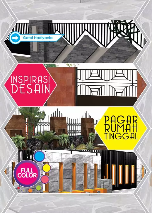 Sinopsis Singkat: Buku ini membahas berbagai inspirasi desain pagar rumah tinggal yang modern, elegan, dan berbahan dasar beragam, seperti besi, beton, dan keramik. Desain yang diusulkan menggabungkan elemen-elemen estetika dengan fungsi praktis, seperti penggunaan jeruji besi yang disusun secara vertikal atau lingkaran yang saling berkaitan sebagai bidang tembus pandang. Warnanya dipadukan secara konsisten dengan kontras yang menciptakan suasana ceria, seperti warna oranye yang menjadi aksen utama, dipadukan dengan warna hitam doff dan putih untuk menegaskan kesan simpel dan modern. Selain itu, desain juga mengintegrasikan elemen alami seperti tanaman hias dan batu pecah untuk memberikan kesan natural dan segar. Buku ini juga menyertakan beberapa perspektif tampilan pagar, seperti tampak depan dan samping, untuk memudahkan pembaca dalam memvisualisasikan konsep desain. Selain inspirasi desain, buku ini juga menyertakan informasi hukum terkait hak cipta, sebagai pengingat penting dalam penggunaan dan pengembangan karya desain.