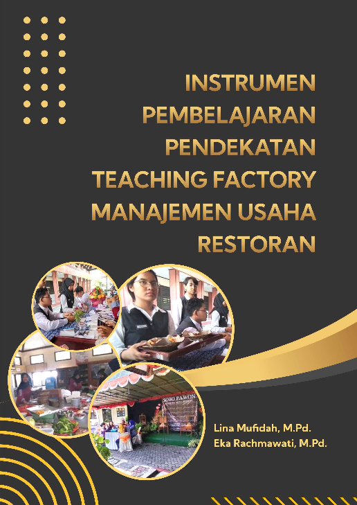 Instrumen penilaian digunakan untuk menilai hasil belajar peserta didik Sistem penilaian meliputi berbagai aspek Penilaian pembelajaran teaching factory dapat digunakan untuk mengukur kompetensi peserta didik yang meliputi proses dan hasil belajar Penilaian akan dilakukan setelah peserta didik menyelesaikan proses pembelajaran Buku ini disusun dengan tujuan agar para pendidik khususnya dalam bidang vokasi kejuruan Boga atau Seni Kuliner dapat mengaplikasikannya pada pembelajaran pendekatan teaching factory sebagai petunjuk dalam penilaian kinerja dan dapat menjadi acuan bagi peserta didik saat melakukan pembelajaran dengan pendekatan teaching factory khususnya pada pelajaran Manajemen Usaha Pembelajaran pendekatan teaching factory bentuk pembelajaran yang dilakukan langsung di tempat praktik tidak di dalam kelas dan praktik yang dilakukan berorientasi pada produksi seperti di industri nyata Penyelenggaraan model ini memadukan sepenuhnya antara belajar dan bekerja tidak lagi memisahkan antara tempat penyampaian teori dan praktik Metode pembelajaran dual system merupakan metode yang mengintegrasikan dua lingkungan utama dalam setiap kegiatan peserta didik yakni lingkungan sekolah dan lingkungan perusahaan industri Secara fundamental dual system bertujuan untuk menempatkan peserta didik dalam situasi nyata di tempat kerja secara menyeluruh Buku ini akan membantu pendidik dalam menguraikan indikator indikator keberhasilan pembelajaran pada manajemen usaha