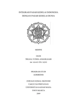 Integrasi Pasar Kedelai Indonesia Dengan Pasar Kedelai Dunia Triana Yudha Anggrasari Fakultas Pertanian UGM Konten Lokal Konten Lokal 31319