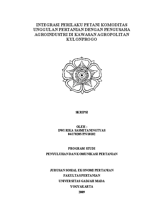 Integrasi Perilaku Petani Komoditas Unggulan Pertanian Dengan Pengusaha Agroindustri Di Kawasan Agropolitan Kulonprogo Dwi Rika Sasmitaningtyas Fakultas Pertanian UGM Konten Lokal Konten Lokal 31198