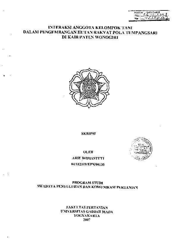Interaksi Anggota Kelompok Tani Dalam Pengembangan Hutan Rakyat Pola Tumpangsari Di Kabupaten Wonogiri Arie Widiastuti Fakultas Pertanian UGM Konten Lokal Konten Lokal 48846