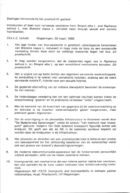 Introduction Of Beet Cyst Nematode Resistance From Sinapsis Alba L. And Raphanus Sativus L. Into Brassica Napus L. (Oil-Seed Rape) Through Sexual And Somatic Hybridization Cilia L.C. Lelivelt Fakultas Pertanian UGM Konten Lokal Konten Lokal 48878