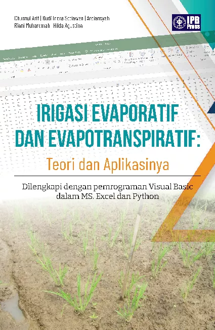 Buku ini menyajikan pentingnya irigasi diberikan secara efektif dan efisien dengan irigasi evaporatif maupun evapotranspiratif sebagai solusinya Kemudian konsep dasar dan model model baik evaporasi maupun evapotranspirasi disajikan termasuk bagaimana menentukannya dengan pemrograman Komputer khususnya Visual Basic dalam MS Excel dan Python Cara pengukuran lapang terhadap besarnya evaporasi dan evapotranspirasi juga disajikan berikutnya Di bagian akhir ini disajikan aplikasi teknologi ini untuk budidaya tanaman pangan khususnya padi dan tanaman sayuran dalam skala kecil yang tepat untuk urban farming Hasil dari penelitian tentang topik ini telah dipublikasikan baik dalam jurnal internasional maupun nasional di mana beberapa bagian dari publikasi tersebut disajikan dalam buku ini