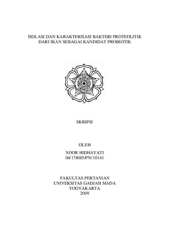 Isolasi Dan Karakterisasi Bakteri Proteolitik Dari Ikan Sebagai Kandidat Probiotik Noor Hidhayati Fakultas Pertanian UGM Konten Lokal Konten Lokal 31267