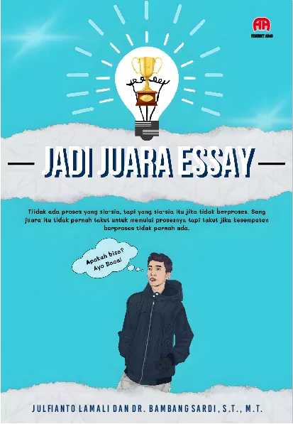 Jadi Juara Essay adalah buku komprehensif yang dirancang untuk membantu pembaca meningkatkan keterampilan menulis essay dan meningkatkan peluang untuk berhasil dalam berbagai kompetisi penulisan essay Dibuat oleh seorang penulis yang insyaAllah paham dan mengerti dalam dunia penulisan esai yang dibuktikan dengan berbagai pengalaman juaranya dan pengalaman menjadi juri Buku ini berisi berbagai strategi dan tips praktis untuk membantu pembaca mengembangkan ide yang kuat merancang struktur esai yang efektif dan menyampaikan argumen kamu dengan jelas dan meyakinkan Setiap langkah dari proses penulisan essay dibahas secara rinci mulai dari perencanaan hingga revisi akhir Buku ini juga menyoroti pentingnya memahami tema menggunakan teknik narasi yang menarik dan membangun argumen yang kuat Melalui contoh contoh essay sukses dan analisis mendalam pembaca juga diajak untuk memahami faktor faktor yang membuat sebuah esai meraih kemenangan dalam kompetisi Selain memberikan cara praktis dalam penulisan essay buku ini juga membahas cara mengasah kreativitas dan mengekspresikan ide ide dengan orisinalitas Dengan pendekatan yang ramah dan inspiratif buku Jadi Juara Essay menjadi sumber daya yang berharga bagi siapa saja yang ingin meraih kesuksesan dalam kompetisi penulisan esai Jadi Juara Essay