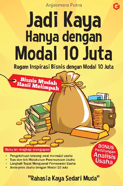 Sinopsis Buku: Buku ini merupakan panduan lengkap dan praktis bagi siapa saja yang ingin memulai usaha dengan modal terbatas, khususnya dengan modal sebesar 10 juta rupiah. Buku ini ditujukan bagi para pengusaha pemula, pelajar, mahasiswa, dan individu yang ingin membangun bisnis dari nol. Dalam buku ini, penulis menyajikan lima bidang usaha yang menjanjikan dan memiliki potensi keuntungan besar, yaitu bidang kuliner, jasa, fashion, dan budidaya. Setiap bidang usaha tersebut dibahas secara mendalam, mulai dari persiapan usaha, pelaksanaan, pemasaran produk, hambatan yang mungkin dihadapi, hingga analisis usaha yang efektif. Selain itu, buku ini juga menyajikan tips dan strategi untuk membangun insting bisnis, memetakan peluang usaha, serta memilih strategi yang tepat untuk mempercepat pertumbuhan bisnis. Buku ini tidak hanya memberikan ide-ide kreatif dan inovatif, tetapi juga memberikan wawasan yang mendalam tentang cara mengelola usaha secara efektif dan mengoptimalkan potensi modal yang dimiliki. Dengan pendekatan yang jelas dan terstruktur, buku ini menjadi referensi yang sangat bermanfaat bagi siapa pun yang ingin meraih kesuksesan dalam dunia bisnis, khususnya dengan modal yang terbatas. Buku ini dirancang untuk membimbing pembaca menuju kesuksesan finansial dan membangun bisnis yang berkelanjutan.