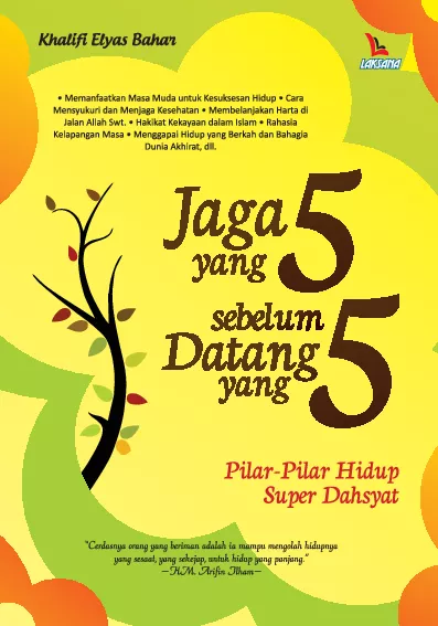 Hidup sehat waktu luang kaya dan masa muda merupakan kesempatan yang harus dimanfaatkan dengan sebaik baiknya agar mendapatkan kemenangan baik di dunia maupun di akhirat Lantas bagaimanakah cara menjaga kelima hal itu Jawabannya yang anda butuhkan ada di dalam buku ini Diantaranya memanfaatkan masa muda untuk kesuksesan hidup mensyukuri dan menjaga kesehatan membelanjakan masa sebaik mungkin serta menggapai hidup yang berkah dan bahagia dunia akhirat Uraian yang berkaitan dengan kelima hal tersebut di buku ini juga diperkuat oleh sajian ayat ayat al Qur an dan hadits Rasulullah saw Dengan demikian anda bisa menjadikannya landasan dalam menjalani kehidupan di dunia plus bekal di akhirat kelak Dengan menjaga kelima hal itu Anda pun takkan merugi bila kelima hal lainnya mendatangi Anda seperti kematian sakit waktu yang sempit kemiskinan dan masa tua Selamat menjadi pribadi muslim yang tangguh serta berdedikasi untuk agama bangsa diri sendiri dan banyak orang
