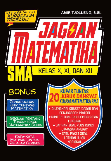 Sinopsis Buku: Buku *Jagoan Matematika SMA Kelas X, XI, dan XII* karya Amir Tjolleng, S.Si., adalah panduan lengkap dan terstruktur untuk memahami konsep matematika yang diberikan di tingkat Sekolah Menengah Atas. Buku ini dirancang untuk membantu siswa dalam memperkuat pemahaman matematika, baik secara teori maupun praktis, melalui berbagai bab yang disusun secara logis dan sistematis. Buku ini terdiri dari beberapa bab yang mencakup topik-topik matematika yang relevan dengan kurikulum SMA, seperti bentuk pangkat, akar, logaritma, persamaan kuadrat, fungsi, trigonometri, serta berbagai bentuk soal latihan yang dirancang untuk meningkatkan kemampuan berpikir kritis dan pemecahan masalah. Setiap bab dilengkapi dengan contoh soal, penjelasan yang jelas, dan latihan soal untuk memperdalam pemahaman siswa. Selain itu, buku ini juga menyediakan panduan untuk menyelesaikan soal-soal yang lebih kompleks, termasuk soal-soal yang melibatkan operasi aljabar, manipulasi bentuk akar, dan penyelesaian persamaan dengan berbagai metode. Buku ini sangat cocok sebagai referensi bagi siswa SMA yang ingin meningkatkan kemampuan matematika mereka, maupun sebagai bahan bacaan bagi guru yang ingin mengembangkan metode pengajaran yang lebih efektif. Dengan struktur yang jelas, penjelasan yang mudah dipahami, dan latihan soal yang beragam, *Jagoan Matematika SMA Kelas X, XI, dan XII* adalah buku yang sangat bermanfaat untuk membantu siswa meraih prestasi akademik yang baik dalam pelajaran matematika.