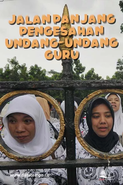 Pembahasan RUU Guru dan Dosen menghadapi berbagai pro kontra Bertujuan memberikan perlindungan dan kompensasi bagi guru dan dosen pada akhirnya RUU ini disyahkan pada tahun 2005 Koleksi Tempo Publishing