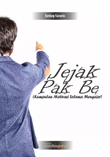 Kata Pengantar A lhamdulillah Allahumma Sholli Ala Muhammad Luar biasa saya rasakan dengan selesainya buku Jejak Pak Be Kumpulan Motivasi Selama Mengajar Terima kasih saya ucapkan kepada istriku anak anakku orang tua dan mertuaku saudarasaudaraku dan semua orang yang selama ini telah memotivasi penulis untuk menyelesaikan buku perdana ini Buku Jejak Pak Be Kumpulan Motivasi Selama Mengajar merupakan sebuah kumpulan motivasi yang penulis lakukan selama menjadi pengajar Selain disampaikan di kelas ada juga yang disampaikan di saat ada siswa yang curhat kepada penulis tentang permasalahannya Ternyata permasalahan yang dihadapi siswa tidak hanya saat belajar di kelas saja permasalahan di luar kelas malah lebih banyak semua butuh untuk ditangani dan diselesaikan Guru diharapkan tidak hanya piawai dalam mengajar akan tetapi juga piawai dalam membantu menangani permasalahan siswa di luar kelas Selain itu juga piawai memberi motivasi kepada siswa sehingga saat mereka lulus mereka tidak hanya ahli di bidangnya tapi juga berkarakter Penulis berharap buku ini menjadi inspirasi oleh pembaca dan para guru lainnya sehingga mau berusaha untuk bisa menuliskan pengalamannya selama mengajar dan dituangkan menjadi sebuah buku Penulis Jejak Pak Be Kumpulan Motivasi Selama Mengajar iii