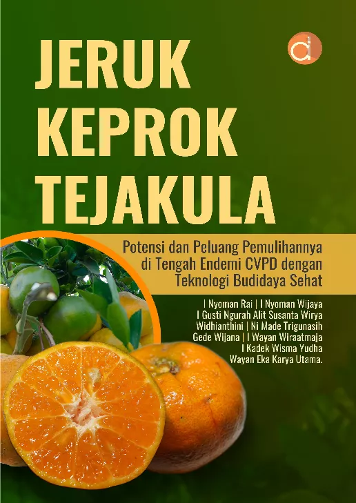 Buku ini menguraikan secara lengkap dan mendalam tentang sejarah dan kisah sukses tentang jeruk keprok Tejakula karakteristik morfologi agronomi genetik dan syarat tumbuh jeruk keprok Tejakula kesesuaian dan potensi lahan untuk pengembangannya pengendalian CVPD dan penyakit penting lainnya pada jeruk keprok Tejakula teknologi budidaya sehat jeruk keprok Tejakula serta strategi pemulihan dan pengembangan kembali jeruk keprok Tejakula Jeruk keprok Tejakula Citrus reticulata cv Tejakula merupakan plasma nutfah jeruk unggul khas Bali yang telah dilepas menjadi varietas unggul nasional Kulit buahnya menarik dengan warna kuning oranye golden yellow saat matang dan cita rasa buah enak sehingga disukai konsumen Jeruk ini kini banyak ditanam kembali setelah lama tidak dibudidayakan sejak terserang CVPD tahun 1984 bibitnya telah diperjualbelikan dengan bebas melalui market place secara online Tingginya minat masyarakat menanam kembali jeruk keprok Tejakula karena dengan kekhasannya jeruk ini dapat menyubstitusi jeruk impor dan permintaan terhadap buah jeruk yang memiliki performa unggul dan berpenampilan menarik seperti keprok Tejakula semakin besar baik di pasar modern supermarket mall gerai buah hotel dan restoran pasar pariwisata maupun di pasar tradisional Dengan demikian jeruk keprok Tejakula sangat prospektif dikembangkan Upaya pengembalian kejayaan jeruk tersebut mendapat dukungan kuat pemerintah tetapi upaya pengembangannya perlu didukung dengan informasi yang lengkap dan penerapan cara budidaya sehat agar kuantitas dan kualitas buahnya optimal serta wabah CVPD atau wabah penyakit sejenis tidak terulang kembali Daftar Isi Buku Pertanian dengan judul Buku Jeruk Keprok Tejakula Potensi dan Peluang Pemulihannya di Tengah Endemi CVPD dengan Teknologi Budidaya Sehat diantaranya Introduksi Sejarah dan Kisah Sukses tentang Jeruk Keprok Tejakula Morfologi Agronomi Genetik dan Syarat Tumbuh Jeruk Keprok Tejakula Kesesuaian Lahan dan Potensi Lahan untuk Pengembangan Jeruk Keprok Tejakula Hama dan Penyakit Penting Jeruk Keprok Tejakula dan Pengendaliannya Budidaya Sehat Jeruk Keprok Tejakula Pemulihan dan Pengembangan Kembali Jeruk Keprok Tejakula