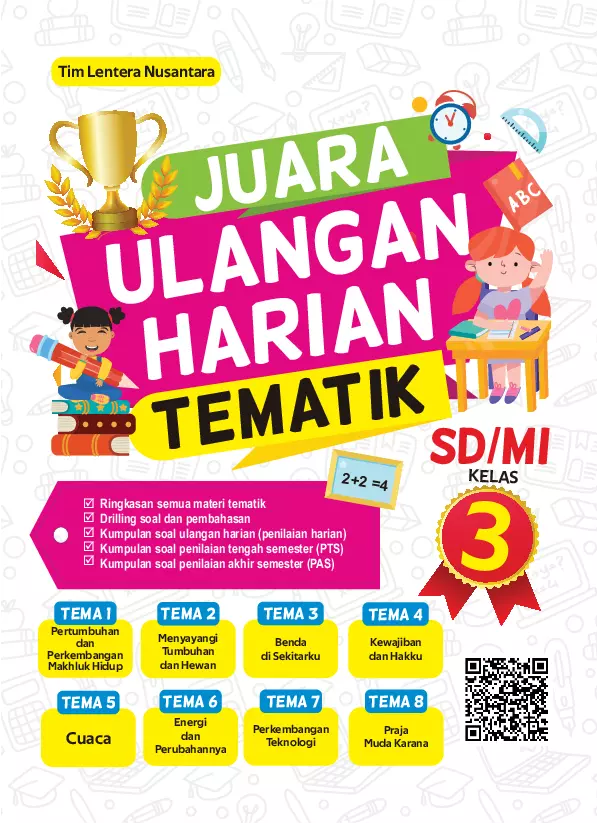 Sinopsis Buku: Buku ini merupakan buku penilaian harian tematik yang disusun berdasarkan Kurikulum 2013 dengan mengacu pada Peraturan Menteri Pendidikan dan Kebudayaan Nomor 37 Tahun 2018. Buku ini dirancang untuk mendukung proses pembelajaran yang menggabungkan pengetahuan, keterampilan, dan sikap melalui pendekatan pembelajaran tematik terpadu. Buku ini berisi berbagai komponen penting seperti kompetensi inti, kompetensi dasar, ringkasan materi, latihan soal, penilaian harian subtema, evaluasi akhir tema, glosarium, penilaian tengah semester, dan penilaian akhir semester. Buku ini bertujuan untuk membantu siswa kelas 3 SD/MI dalam mempersiapkan diri menghadapi ulangan dan ujian akhir dengan lebih terstruktur dan efektif. Buku ini juga merupakan buku yang terbuka dan terus berkembang, dengan harapan menerima masukan dan kritik yang konstruktif dari pembaca untuk penyempurnaan edisi berikutnya.