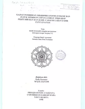 Kajian Pemberian Mikroorganisme Efektif Dan Pupuk Nitrogen Lepas Lambat Terhadap Pertumbuhan Dan Hasil Cabai Di Lahan Pasir Dody Kastono Fakultas Pertanian UGM Konten Lokal Konten Lokal 31140