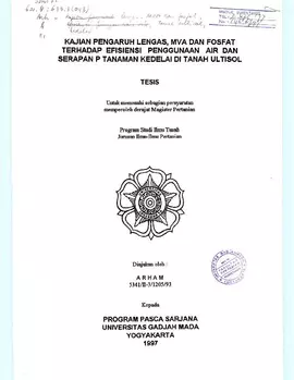 Kajian Pengaruh Lengas, Mva Dan Fosfat Terhadap Efisiensi Penggunaan Air Dan Serapan P Tanaman Kedelai Di Tanah Ultisol Arham Fakultas Pertanian UGM Konten Lokal Konten Lokal 31129
