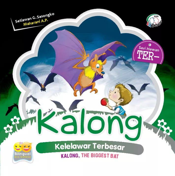 Kalian lihat itu Itu kalong Kalong adalah sejenis kelelawar Saat matahari tenggelam kalong berbondong bondong keluar dari sarangnya untuk mencari makan Di antara jenis kelelawar lainnya tubuh kalong lebih besar Karena itu kalong dijuluki kelelawar terbesar Buku Seri Hewan Ter ini menceritakan kelebihan dan keunikan yang dimiliki oleh kalong Segera miliki koleksinya dijamin pengetahuan kalian akan bertambah