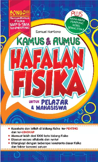 Buku ini berisi pengertian istilah istilah dalam Fisika walaupun di dalamnya terdapat informasi pelengkap seperti faktor konversi satuan daftar pemenang Nobel Fisika serta beberapa rumus Fisika