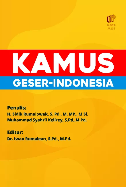Kamus bahasa Geser Indonesia merupakan kamus dwibahasa Kamus ini berusaha mendokumentasikan kosakata bahasa Geser disertai dengan sistem bunyi ujaran dan sistem penulisan Sistem penulisan disesuaikan dengan ejaan bahasa Indonesia karena bahasa Geser belum mengenal sistem tulisan Bentuk kosakata dituliskan pada urutan pertama diikuti simbol jenis kata seperti nomina n verba v dan adjektifa adj dilanjutkan dengan pengujaran dalam kurung kurawal kemudian deskripsi makna dan diakhiri dengan contoh abata a bata luka terluka terpotong terbelah bagian tubuh pada manusia atau hewan karena penyakit kulit atau terkena alat tajam ataupun jatuh dsb 1 abata luka itu 2 nabat ti dia terluka 3 abat ira Bobak besar luka itu 4 abata mahun luka kecil 5 watan nabat ababis seluruh badan kenal luka 6 abata masingat sakit karena luka Selain itu disusun juga 100 kalimat sederhana bahasa Indonesia yang disertai dengan terjemahan bebasnya dalam bahasa Geser Contoh kalimat tersebut terutama penggunaan dalam kehidupan sehari hari Misalnya saya ditawari ikan datawar aku nai ikana Kalimat tersebut berstruktur S P O dalam bahasa Indonesia sedangkan bahasa Geser strukturnya menjadi P S O Bahasa Geser digunakan sebagai nama lain dari bahasa Gorom bahasa Geser Gorom dan bahasa Seran atau Seran Goran Bahasa Geser dituturkan juga di bagian Timur Utara Pulau Seram Bula Barat Bula Timur hingga ke bagian Timura Selatan Kecamatan Kilmuri berbatasan dengan Werinama dan di bagian Timur Tenggara Kepulauan Gorom