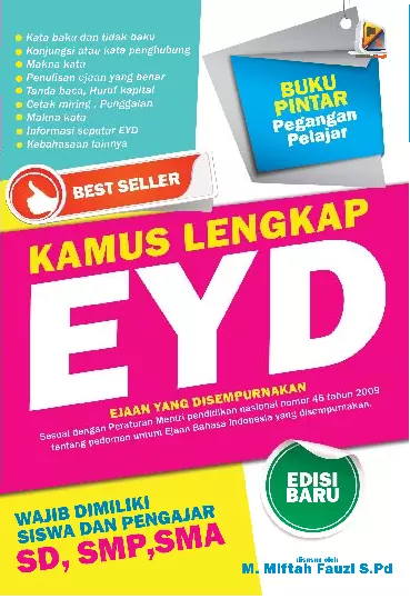 Sinopsis Buku: Buku ini merupakan panduan lengkap dan terperinci tentang Ejaan Bahasa Indonesia yang Disempurnakan (EYD), yang dirancang untuk memudahkan para pelajar, siswa, dan penulis dalam memahami dan menerapkan aturan tata bahasa Indonesia secara benar dan konsisten. Buku ini mencakup berbagai topik penting seperti pemakaian huruf, jenis-jenis kata, tanda baca, unsur serapan, awalan, kata depan, bentuk sisipan, akhiran, bentuk kata, penulisan kata ulang, bentuk kalimat, peribahasa, ungkapan, serta sinonim dan antonim. Selain itu, buku ini juga menjelaskan secara detail tentang penggunaan huruf q dan x, diftong, gabungan huruf konsonan, dan aturan huruf kapital dalam berbagai konteks. Buku ini sangat bermanfaat sebagai acuan dalam dunia penulisan, baik untuk penulisan fiksi maupun non-fiksi, karena menekankan pentingnya penggunaan bahasa yang baik, benar, dan sesuai dengan standar EYD. Dengan struktur yang terorganisir dan penjelasan yang jelas, buku ini menjadi sumber referensi yang sangat berguna bagi siapa pun yang ingin meningkatkan kemampuan berbahasa Indonesia secara akademis dan profesional.
