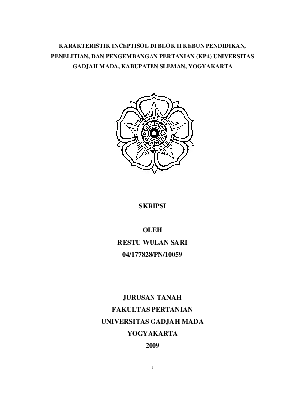 Karakteristik Inceptisol Di Blok Ii Kebun Pendidikan, Penelitian, Dan Pengembangan Pertanian (Kp4) Universitas Gadjah Mada, Kabupaten Sleman, Yogyakarta Restu Wulan Sari Fakultas Pertanian UGM Konten Lokal Konten Lokal 31289