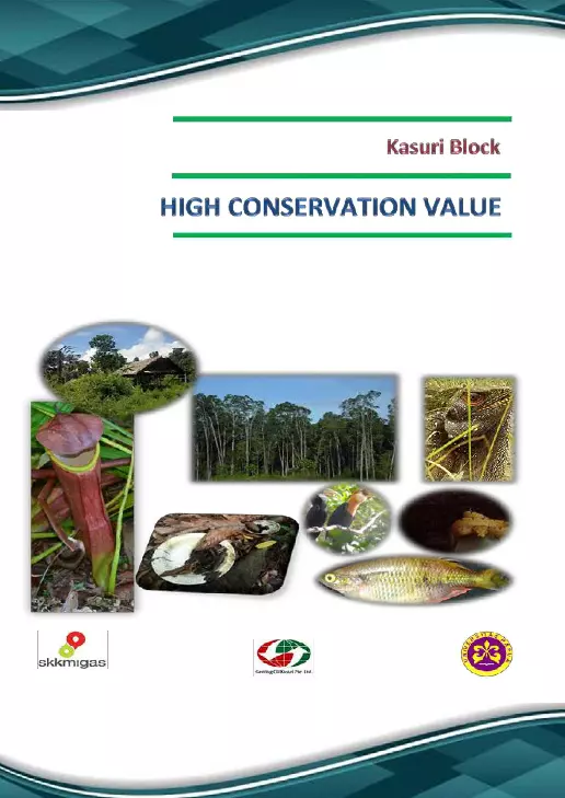 Buku tentang studi Identifikasi Kawasan Bernilai Konservasi Tinggi High Conservation Value di area rencana pengembangan tahap pertama plan of development I Genting Oil Kasuri Pte Ltd GOKPL terletak di Distrik Sumuri Kabupaten Teluk Bintuni Provinsi Papua Barat Identifkasi kawasan bernilai konservasi tinggi ini merupakan bukti kepedulian Operator migas dalam pelestarian lingkungan hidup Tujuan utama identifikasi ini adalah dengan temuan HCV dapat memberikan kontribusi dibidang konservasi untuk mempertahankan dan melestarikan keanekaragaman hayati yang terancam dan hampir punah serta mendukung proses pembangunan yang berkelanjutan di Indonesia lebih khususnya Papua Barat Pusat Penelitian Lingkungan Hidup Universitas Papua PuslitLH UNIPA telah memberikan dukungan kepada Genting Oil Kasuri Pte Ltd dalam upaya perbaikan praktik pengelolaan Lingkungan secara lestari Puslit LH UNIPA melaksanakan penilaian HCV dengan didukung oleh tim ahli berlatar belakang multi disiplin yang berasal dari Universitas Papua UNIPA dan Balai Penelitian dan Pengembangan Kehutanan Manokwari Proses identifikasi dilakukan melalui penelusuran berbagai sumber yang valid dan survey lapangan berdasarkan kaidah ilmiah Survey dan penyusunan ini mengacu pada toolkit HCVF High C o n s e r v a tio n V alu e F o r e s t atau hutan bernilai konservasi tinggi Analisis dari temuan lapangan didukung dengan informasi spasial berupa peta menunjukkan ancaman sumberdaya hutan saat ini