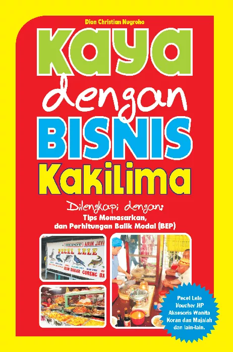 Buku ini akan memberikan informasi kepada Anda jenis jenis bisnis kakilima yang menguntungkan serta bagaimana tips memasarkannya Selain itu dengan perhitungan waktu balik modal yang cermat Anda dapat menjadikannya sebagai sumber pemasukan baru bagi keuangan Anda