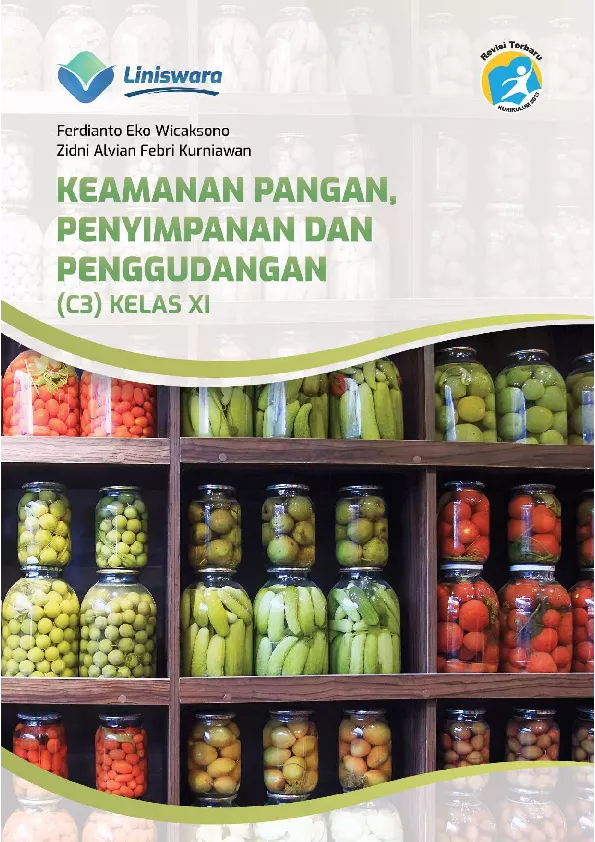 Buku Keamanan Pangan Penyimpanan dan Penggudangan C3 Kelas XI telah disesuaikan dengan Kompetensi Inti dan Kompetensi Dasar KI KD pada Kurikulum 2013 Revisi Terbaru Buku ini dibuat khusus untuk siswa Sekolah Menengah Kejuruan Madrasah Aliyah Kejuruan SMK MAK kelas XI Bidang Keahlian Agribisnis dan Agroteknologi dengan Program Keahlian Agribisnis Pengolahan Hasil Pertanian pada Kompetensi Keahlian Agribisnis Pengolahan Hasil Pertanian C3 Pada setiap bab tersedia peta konsep dan ilustrasi gambar yang akan memudahkan siswa maupun guru untuk lebih memahami isi materi Materi disusun dengan runtut dan diakhiri dengan soal penunjang pemahaman siswa Soal disajikan dalam bentuk pilihan ganda esai HOTS tugas kelompok mandiri dan tugas praktik untuk menjamin tercapainya tujuan pembelajaran