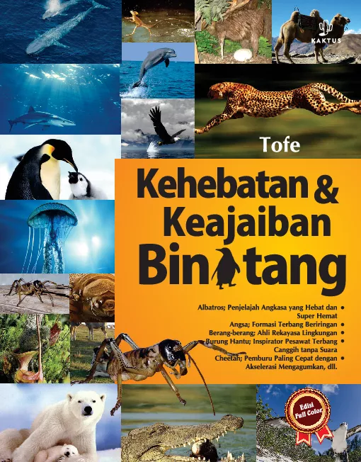 Tahukah Anda setiap binatang di bumi mempunyai kelebihan yang tidak dimiliki oleh manusia Bahkan beberapa keistimewaan dan keunikan binatang tersebut bisa menginspirasi manusia untuk menciptakan teknologi yang sangat bermanfaat bagi kehidupan Sebut saja kemampuan Albatros dalam memanfaatkan angin sebagai sumber energi tanpa batas yang menginspirasi terciptanya olahraga terbang layang formasi terbang V ala angsa yang kemudian menjadi formasi favorit pesawat tempur cara terbang burung hantu yang nyaris tanpa suara yang menginspirasi pesawat siluman capung yang menginspirasi terciptanya helikopter dan rumah rayap yang menginspirasi pembuatan real estate dengan ventilasi yang canggih Apakah hanya binatang binatang itu yang mempunyai keistimewaan Tentu saja tidak Di dalam buku ini ada banyak keistimewaan binatang lain yang akan dibahas Simak saja penjelasannya satu per satu dan jadikan panduan untuk menemukan keistimewaan binatang lain sehingga dapat menginspirasi Anda untuk menciptakan sebuah teknologi