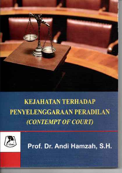 Nomenklatur CONTEMPT OF COURT atau Kejahatan Terhadap Penyelenggaraan Peradilan mempunyai dua arti Dalam arti luas diartikan sebagai kejahatan terhadap penyelenggaraan peradilan Crimes Against Administration of Justice dalam arti sempit diartikan sebagai kejahatan penghinaan pelecehan merendahkan pengadilan Contempt of Court Dua arti substansi Contempt of Court ini dibahas secara intensif dalam 5 lima Bab sebagai berikut Bab I Pendahuluan A Pendahuluan B Ruang Lingkup Contempt of Court C Delik delik dalam KUHP yang dapat digolongkan sebagai delik terhadap penyelenggaraan peradilan Contempt of Court Bab II Kejahatan Terhadap Penyelenggaraan Peradilan dalam KUHP Indonesia A Uraian Umum B Perincian Rumusan Delik Bab III Kejahatan Terhadap Penyelenggaraan Peradilan dalam KUHP Negara Lain A KUHP Federasi Jerman B KUHP Federasi Rusia C KUHP Thailand D KUHP Jepang E KUHP Swedia F KUHP RRC G KUHP Malaysia H KUHP Singapura I KUHP Brunei J KUHP Pakistan Bab IV Kejahatan Terhadap Penyelenggaraan Peradilan dalam Rancangan KUHP Indonesia Bab V Kesimpulan