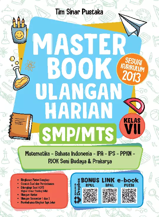 Pingin dapat nilai bagus setiap ulangan harian Sobat Pintar wajib punya buku Master Book Ulangan Harian SMP MTS Kelas VII nih Di dalamnya memuat banyak latihan umum dari berbagai mata pelajaran di tingkat SMP MTS kelas VII lho Isinya juga gampang banget dipahami Yuk segera beli biar makin PD dan mudah mengerjakan ulangan harian Selamat belajar
