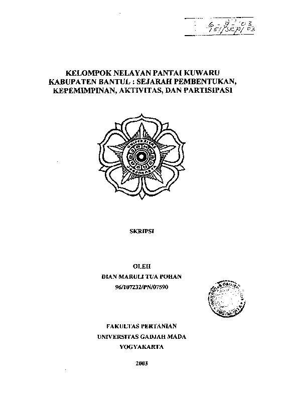 Kelompok Nelayan Pantai Kuwaru Kabupaten Bantul: Sejarah Pembentukan, Kepemimpinan, Aktivitas, Dan Partisipasi Dian Maruli Tua Pohan Fakultas Pertanian UGM Konten Lokal Konten Lokal 48223