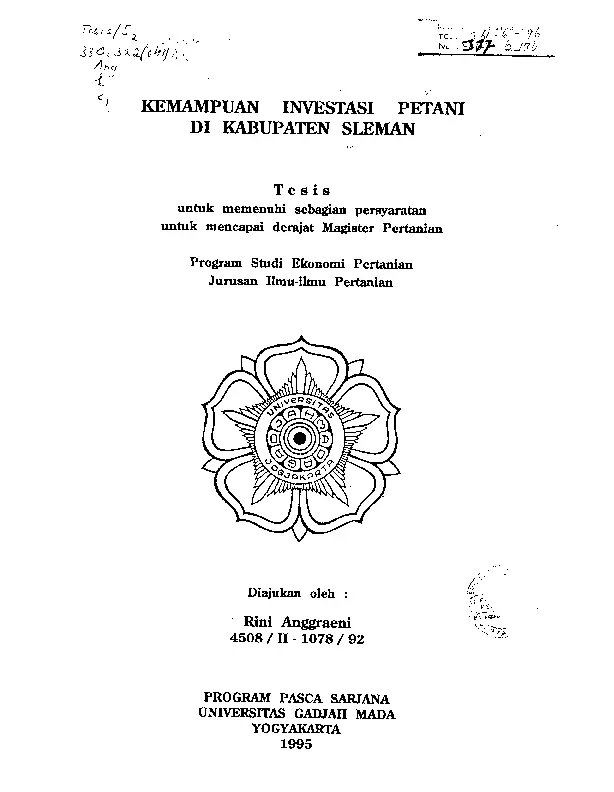 Kemampuan Investasi Petani Di Kabupaten Sleman Rini Anggraeni Fakultas Pertanian UGM Konten Lokal Konten Lokal 31117