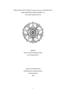 Keragaman Sifat Wijen (Sesamum Indicum L.) Generasi M3 Hasil Irradiasi Sinar Gamma 60Co Di Lahan Pasir Pantai Wijaya Murti Indriatama Fakultas Pertanian UGM Konten Lokal Konten Lokal 31327