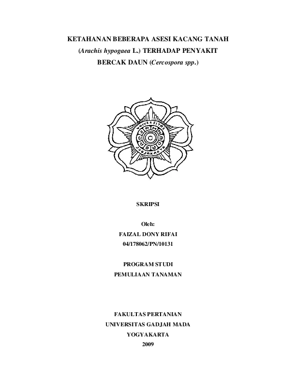Ketahanan Beberapa Asesi Kacang Tanah (Arachis Hypogaea L.) Terhadap Penyakit Bercak Daun (Cercospora Spp.) Faizal Dony Rifai Fakultas Pertanian UGM Konten Lokal Konten Lokal 31211
