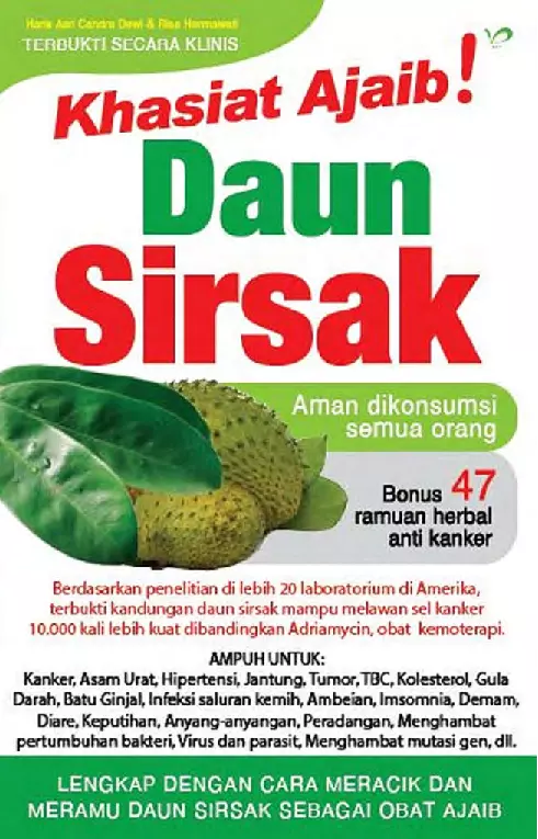 Sinopsis Buku: Buku ini menjelaskan secara mendetail tentang khasiat ajaib daun sirsak yang kini semakin dikenal sebagai tanaman obat alami yang memiliki potensi besar dalam membantu penderita penyakit kanker dan berbagai penyakit lainnya. Buku ini memberikan informasi lengkap mengenai daun sirsak, mulai dari asal-usul dan penyebarannya, hingga manfaat dan penggunaannya secara efektif. Daun sirsak, yang selama ini dianggap hanya sebagai bagian pembuangan dari tanaman sirsak, ternyata memiliki daya pemberantasan penyakit yang luar biasa, bahkan lebih efektif dan lebih aman dibandingkan kemoterapi. Buku ini juga membahas berbagai tips dan trik penggunaan daun sirsak sebagai tanaman obat, penggunaan secara tunggal maupun terpadu, pantangan dalam mengonsumsinya, serta cara mengatasi efek samping yang mungkin terjadi. Selain itu, disajikan pula berbagai ragam cara mengolah daun sirsak menjadi ramuan herbal, serta panduan meracik dan meramu daun sirsak yang efektif. Buku ini juga menggambarkan penggunaan daun sirsak selain sebagai obat herbal, serta berbagai testimoni dari para pengguna yang telah merasakan manfaatnya. Selain itu, buku ini juga menyajikan berbagai ramuan herbal antikanker yang bisa menjadi alternatif lain, sebagai tambahan pengetahuan bagi pembaca. Dengan berbagai informasi yang disajikan secara terstruktur dan jelas, buku ini menjadi sumber referensi yang sangat bermanfaat bagi para penderita penyakit kanker, pengusaha tanaman obat, serta mereka yang tertarik untuk menekuni budidaya tanaman sirsak. Semoga buku ini dapat menjadi panduan praktis dan bermanfaat bagi pembaca.