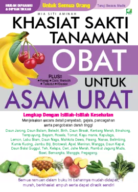 Sinopsis Buku: Buku ini merupakan panduan lengkap dan praktis mengenai penyakit asam urat, yang dirancang untuk membantu pembaca memahami penyebab, gejala, diagnosis, serta cara mencegah dan mengobati penyakit ini secara efektif. Buku ini menggabungkan penjelasan ilmiah yang jelas dengan resep ramuan herbal alami yang mudah didapat dan murah, seperti daun jarong, daun salam, seledri, sirih, daun sirsak, kentang merah, binahong, tempuyung, bayam, rosela, tomat, kayu manis, kapulaga, lemon, labu siam, daun naga, mahkota dewa, pisang, nanas, belimbing, kumis kucing, jambu biji, brotowali, apel, meniran, mangga, daun kepel, daun salai guggul, teh, kelapa, ceri, jahe merah, rambut jagung muda, sawi, semangka, manggis, dan pegagang. Buku ini tidak hanya menjelaskan secara detail penyebab dan dampak asam urat, tetapi juga memberikan panduan tentang gaya hidup sehat, makanan yang disarankan, serta penanganan medis dan tradisional. Selain itu, buku ini juga menekankan pentingnya edukasi kesehatan dan peran keluarga serta lingkungan dalam mencegah dan mengatasi penyakit asam urat. Dengan informasi yang terstruktur dan mudah dipahami, buku ini menjadi sumber referensi yang sangat bermanfaat untuk masyarakat umum yang ingin memahami dan mengelola penyakit asam urat secara mandiri.