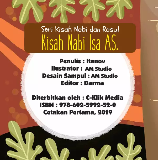 Sinopsis Buku: Buku ini menceritakan kisah Nabi Isa Al-Masih, yang dikenal sebagai Yesus dalam tradisi Kristen, dalam perspektif Islam. Cerita dimulai dengan kelahiran Nabi Isa, yang dilahirkan oleh Maryam tanpa ayah, dan dianggap sebagai anak yang saleh. Ia diberi Kitab Taurat dan diperintahkan untuk berbuat kebaikan, mendirikan shalat, membayar zakat, serta menjaga ketaatan. Kisah ini juga melibatkan peran Malaikat Jibril yang memberi kabar gembira kepada Maryam. Selain itu, buku ini juga menceritakan kisah Nabi Isa yang memiliki sahabat yang tidak jujur. Sahabat tersebut mengambil sepotong roti yang dimaksudkan untuk Nabi Isa, tetapi akhirnya mengakui kesalahannya setelah diberi emas oleh Nabi Isa sebagai ganjaran. Namun, sahabat itu dilarang mengikuti Nabi Isa lagi. Setelah Nabi Isa dan sahabat-sahabatnya pergi, tiga pencuri datang dan membunuh sahabat itu serta mengambil emasnya. Buku ini juga menyajikan kisah-kisah lain tentang Nabi Isa, seperti peristiwa saat ia berdoa dan meminta makanan dari langit bagi orang-orang yang menggunjingnya. Allah SWT menurunkan hidangan dari langit, dan memberikan peringatan bagi siapa pun yang kafir setelah itu. Selain itu, kisah ini juga menggambarkan bagaimana Allah mengubah wajah pengikut Nabi Isa yang berkhianat menjadi mirip dengan Nabi Isa sendiri. Buku ini dilengkapi dengan ilustrasi yang menarik dan penjelasan yang mudah dipahami, membuatnya cocok untuk anak-anak dan pembaca yang ingin memahami kisah Nabi Isa dari perspektif Islam.