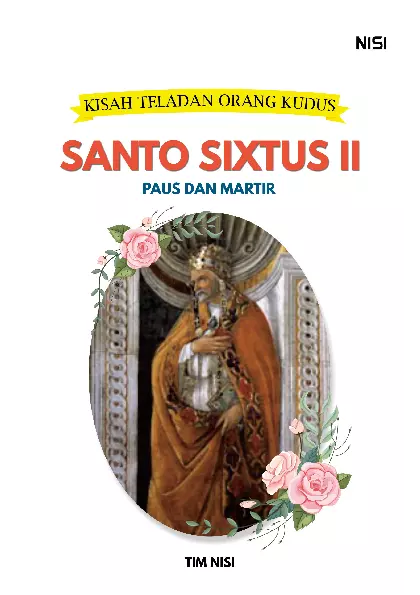 Sinopsis Buku: Buku ini mengisahkan kisah teladan dari Santo Sixtus II, seorang Paus dan martir yang berani mempertahankan iman kepada Yesus meskipun menghadapi penganiayaan yang begitu keras. Santo Sixtus II dipilih menjadi Paus pada masa penganiayaan Kaisar Valerianus, dimana banyak orang Kristen di Roma mengalami tekanan dan bahkan dibunuh. Dalam masa penganiayaan tersebut, Santo Sixtus II bersama keenam diakonnya menjadi martir yang gugur pada hari yang sama dengan penderitaan yang sangat kejam. Kisah Santo Sixtus II ini tidak hanya menunjukkan keberanian dan kesetiaan iman, tetapi juga menggambarkan bagaimana iman yang teguh dapat menjadi sumber kekuatan dan pengorbanan yang mendatangkan berkat bagi Gereja. Buku ini juga membahas peran para martir dalam sejarah Gereja, khususnya dalam masa penganiayaan Romawi, dan memberikan gambaran tentang bagaimana iman yang tulus dapat mengubah hidup dan memperkuat komunitas Kristen. Selain itu, buku ini juga mengupas latar belakang Santo Sixtus II, perannya sebagai Paus, dan kontribusinya terhadap perayaan Misa serta pelayanan kepada umat. Buku ini diharapkan dapat menjadi sumber inspirasi bagi pembaca untuk meneladani hidup Santo Sixtus II dan memperkuat iman mereka dalam menghadapi tantangan hidup. Dengan mengetahui kisah para orang kudus, kita diingatkan untuk terus berpegang pada iman dan menjadikan mereka sebagai pelindung serta perantara doa dalam hidup kita.