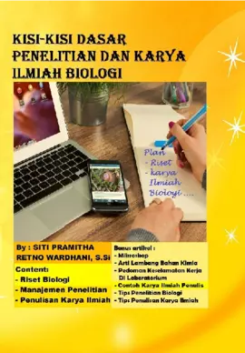 Dewasa ini perkembangan IPTEK Ilmu pengetahuan dan teknologi berjalan dengan pesat Untuk mengimbanginya diperlukan penelitian dan karya ilmiah yang berkualitas agar siap mengikuti perubahan zaman dan mampu bersaing secara sehat Dalam melakukan kegiatan penelitian dan penulisan karya ilmiah seorang peneliti harus mengerti dan memahami berbagai macam hal mengenai penelitiannya dan harus dapat menemukan merumuskan serta memecahkan masalah secara pasti dan benar Saat melakukan kegiatan penelitan seorang peneliti harus menerapkan langkah langkah metode ilmiah antara lain observasi merumuskan masalah menyusun kerangka pemikiran merumuskan hipotesis melakukan latihan penelitian dasar studi literatur dan latihan menarik kesimpulan serta berlatih mengkomunikasikan hasil penelitian dengan menulis karya ilmiah Buku Kisi Kisi Dasar Penelitian Dan Penulisan Karya Ilmiah Biologi ini hadir untuk memudahkan kita dalam menjalankan penelitian dan karya ilmiah Buku ini diperkaya dengan contoh karya ilmiah penulis saat kuliah yang diharapkan dapat menambah motivasi dalam menulis karya ilmiah setelah selesai melakukan penelitian
