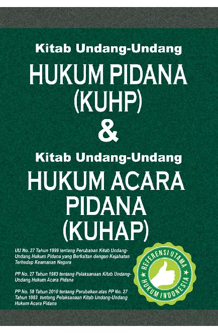 KUHP Kitab Undang Undang Hukum Pidana dan KUHAP Kitab Undang Undang Hukum Acara Pidana merupakan kumpulan kodifikasi perundangan yang penting di Indonesia Materi buku ini juga menjadi referensi utama dan dibutuhkan oleh praktisi hukum akademisi mahasiswa maupun masyarakat umum Buku ini paling lengkap karena memuat juga berbagai perundangan lain yang terkait Semoga buku ini dapat membantu Anda memahami berbagai kodifikasi hukum yang ada dalam praktik hukum di Indonesia