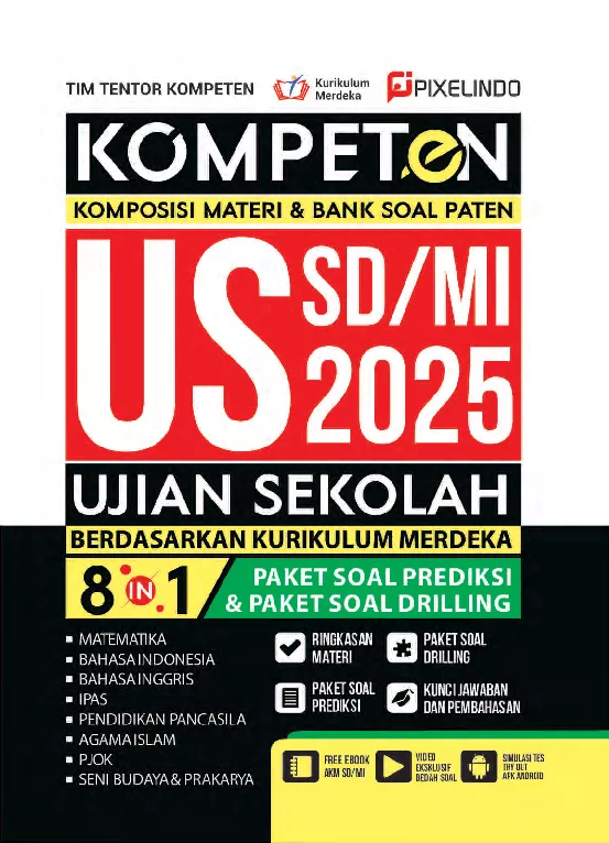 Ujian Sekolah adalah ujian penentu kelulusan peserta didik yang diselenggarakan oleh Satuan Pendidikan yang bertujuan untuk menilai pencapaian standar kompetensi lulusan untuk semua mata pelajaran Ujian sekolah dapat dilaksanakan dalam berbagai bentuk ujian seperti portofolio penugasan tes tertulis dan atau kegiatan lain yang dapat diukur berdasarkan Standar Nasional Pendidikan Maka dari itu Ujian Sekolah harus dipersiapkan sebaik mungkin oleh peserta didik Dalam menghadapi Ujian Sekolah peserta didik harus rajin dalam belajar serta berlatih soal Maka dari itu Buku Ujian Sekolah US SD MI 2025 hadir untuk membantu peserta didik dalam mempersiapkan ujian sekolah mendatang Buku ini berisi materi materi pelajaran yang diujikan dalam US seperti Matematika Bahasa Indonesia IPAS PPKN Seni Budaya dan Prakarya Pendidikan Agama Islam PJOK dan Bahasa Inggris Selain materi yang lengkap di dalam buku ini juga terdapat soal prediksi US yang sudah disertai dengan kunci jawaban dan pembahasan yang rinci dan logis Soal soal yang ada pun merupakan soal soal HOTS yang mana mampu untuk mengukur dan mengembangkan kemampuan berpikir tingkat tinggi siswa