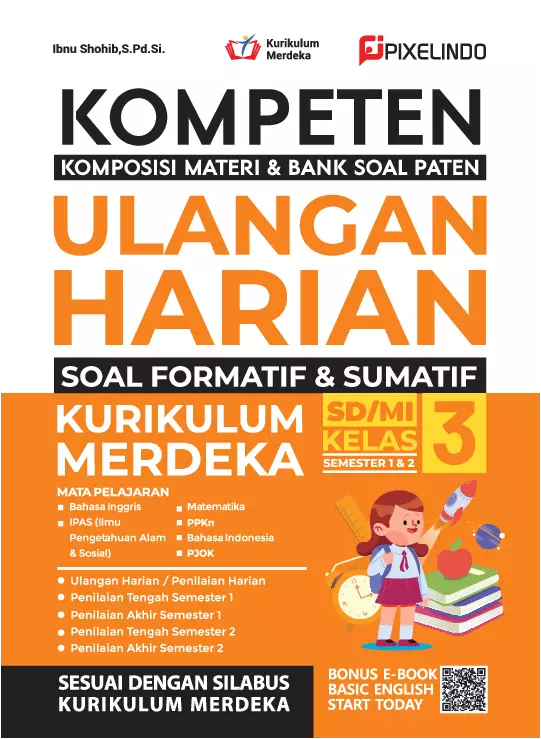Untuk mempersiapkan ujian tengah semester dan ujian akhir semester biasanya para siswa dan siswi akan diberikan bermacam macam pola soal untuk dikerjakan Namun di Kurikulum Merdeka ini para siswa tidak lagi difokuskan mengerjakan soal tetapi lebih ke implementasi sebuah materi ke dalam studi kasus Hal ini lebih memudahkan para siswa untuk memahami sebuah konsep karena langsung berhubungan dengan kehidupan sehari hari Untuk lebih memudahkan belajar buku ini telah merangkum materi Sekolah Dasar khususnya kelas 3 Buku Kumpulan Soal Ulangan Harian Sekolah Dasar Kelas 3 ini terdiri dari mata pelajaran Matematika PKN IPAS PJOK Bahasa Indonesia dan Bahasa Inggris Masing masing mata pelajaran memuat ringkasan materi soal serta pembahasan soal yang sudah disesuaikan dengan kurikulum merdeka yang mana dalam kurikulum ini memberikan kebebasan kepada siswa dan siswi untuk belajar sesuai dengan kemampuan dan perkembangannya Dengan buku kumpulan soal ini diharapkan para siswa dan siswi dapat belajar lebih seru dan menyenangkan Jika belajar dengan hati gembira maka nilai terbaik pun dapat diraih dengan mudah
