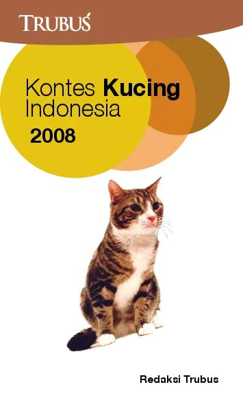 Kucing adalah satwa klangenan yang amat mempesona Bentuk tubuh yang proporsional dengan bulu yang rapi membuat pehobi jatuh hati Bagi pehobi memiliki kucing berjenis dan berpenampilan eksklusif merupakan sebuah gengsi nbsp Kucing berkarakter menawan bahkan menjadi idola di ajang kontes Kontes juga menjadi ajang bagi pehobi untuk saling bertukar pengalaman merawat kucing Buku ini menyajikan fenomena kontes kucing di Indonesia yang berlangsung pada 2008