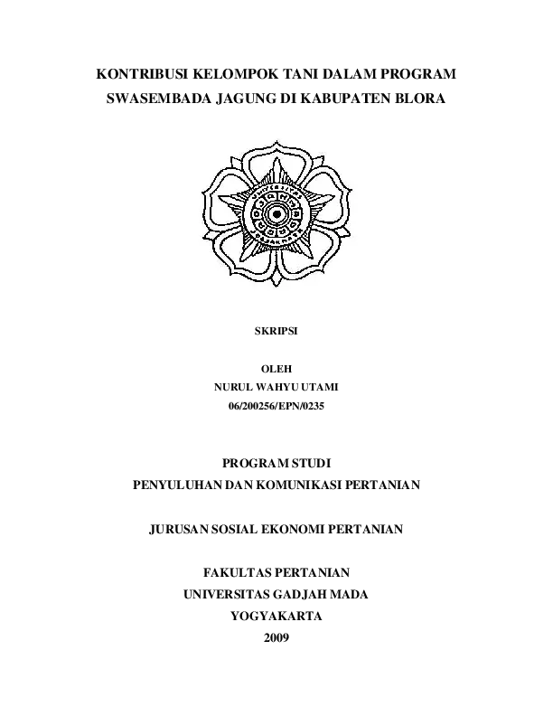 Kontribusi Kelompok Tani Dalam Program Swasembada Jagung Di Kabupaten Blora Nurul Wahyu Utami Fakultas Pertanian UGM Konten Lokal Konten Lokal 31277