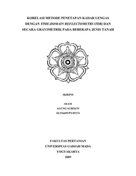 Korelasi Metode Penetapan Kadar Lengas Dengan Time-Domain Reflecometri (Tdr) Dan Secara Gravimetrik Pada Beberapa Jenis Tanah Agung Subekti Fakultas Pertanian UGM Konten Lokal Konten Lokal 31157