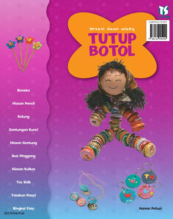 Lihatlah lingkungan di sekitarmu Banyak limbah di mana mana Ada limbah plastik dan kaleng yang tidak bisa terurai juga limbah kertas kardus dan bahan makanan yang tidak bisa dipakai lagi Kamu tentu tak ingin benda henda itu mengotori rumahmu bukan Melalui buku ini kamu akan mempelajari cara mendaur ulang limbah limbah itu menjadi benda benda yang bermanfaat Disajikan dengan foto foto agar kamu mudah mengikuti cara pembuatannya tahap demi tahap Kamu bisa mencoba berkreasi membuat aneka benda benda daur ulang dari keenam buku seri Kreasi Daur Ulang ini Wow benda benda yang unik dan menarik bisa kamu miliki Ayo kembangkan kreativitas dan imajinasimu untuk menciptakan karya karya daur ulang yang menakjubkan
