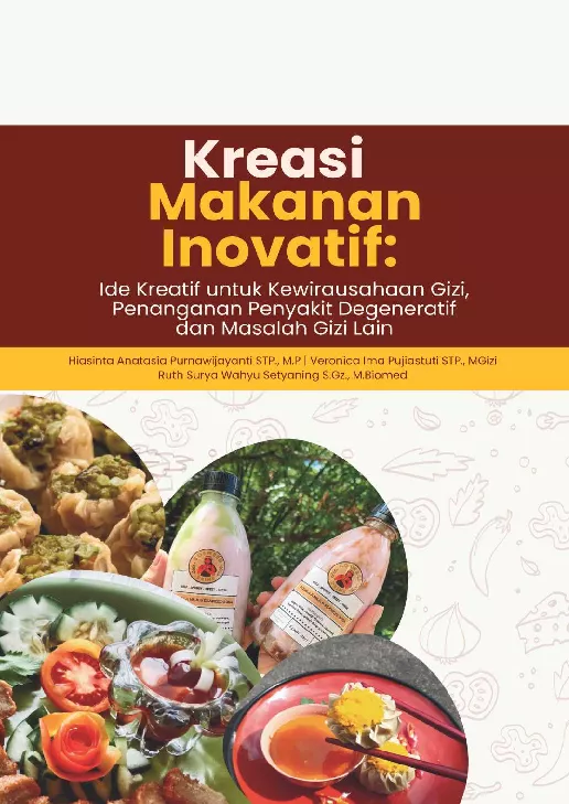 Indonesia saat ini masih menanggung beban masalah gizi Triple Burden of Malnutrition yakni masalah kekurangan gizi underweight stunting wasting defisiensi mikronutrien yaitu anemia Gangguan Akibat Kekurangan Iodium GAKI serta kelebihan berat badan obesitas yang berkaitan erat dengan berbagai penyakit tidak menular yang berhubungan dengan gaya hidup dan pola makan Pada sisi lainnya perkembangan usaha kuliner industri makanan baik skala mikro menengah dan besar sangatlah pesat Di berbagai lokasi dengan mudah kita temukan tempat wisata kuliner pusat jajanan dan industri pengolahan makanan dengan aneka produknya yang beragam Pelaku usaha makanan dapat memberi kontribusi dalam upaya pemecahan masalah gizi dengan menyediakan produk produk makanan yang dapat dimanfaatkan dalam intervensi gizi pada tiga masalah gizi tersebut Salah satu upaya yang dilakukan penulis melalui buku ini adalah dengan melakukan inovasi makanan yang dapat dimanfaatkan untuk upaya preventif dan promotif dalam penanganan masalah gizi Inovasi yang dilakukan terutama dengan memanfaatkan potensi lokal baik komoditas nabati maupun hewani yang memiliki nilai gizi dan senyawa fungsional yang bermanfaat bagi kesehatan