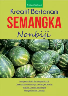 Sinopsis Buku: Buku *Kreatif Bertanam Semangka Nonbiji* ini dirancang untuk menjadi panduan lengkap dan praktis bagi para petani, pengusaha, maupun pecinta pertanian yang tertarik membangun usaha budidaya semangka nonbiji. Dengan meningkatnya permintaan pasar terhadap buah semangka nonbiji, baik di dalam maupun luar negeri, buku ini hadir untuk memenuhi kebutuhan akan informasi yang jelas dan terstruktur mengenai tata laksana budidaya semangka nonbiji. Buku ini mencakup berbagai bab yang membahas secara mendetail langkah-langkah budidaya mulai dari persiapan lahan, penyemaian, penyerbukan, hingga pemeliharaan tanaman. Selain itu, juga dibahas tahap-tahap pasca panen seperti penyortiran, penyimpanan, pengemasan, pengangkutan, dan pemasaran. Bagi yang ingin memperluas usaha, buku ini juga menyediakan analisis sederhana mengenai potensi usaha budidaya semangka nonbiji. Tidak hanya itu, buku ini juga menyajikan berbagai resep olahan semangka nonbiji yang bisa digunakan untuk memperluas pemasaran, seperti agar-agar, sorbet, smoothies, salad, manisan, dan kwaci. Selain itu, diberikan pula informasi tentang seni fruit carving yang bisa menjadi nilai tambah dalam promosi produk semangka nonbiji. Dengan informasi yang terorganisir dan mudah dipahami, buku ini menjadi referensi yang sangat bermanfaat bagi siapa pun yang ingin memulai atau mengembangkan usaha budidaya semangka nonbiji.