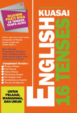 Sinopsis Buku: Buku ini merupakan panduan lengkap dan praktis untuk memahami 16 tenses dalam bahasa Inggris. Dengan pendekatan yang sederhana dan mudah dipahami, buku ini dirancang untuk membantu pembaca—baik pelajar, mahasiswa, maupun umum—menguasai berbagai bentuk tenses dengan cepat dan efektif. Buku dibagi menjadi empat bab utama, yaitu Present Tense, Past Tense, Future Tense, dan Past Future Tense. Setiap bab menjelaskan empat jenis tenses yang berbeda, diantaranya Simple, Continuous, Perfect, dan Perfect Continuous. Penjelasan disertai dengan contoh yang jelas dan relevan, sehingga memudahkan pembaca dalam memahami penggunaan dan struktur kalimat. Selain itu, buku ini juga menyertakan daftar kata kerja beraturan dan tidak beraturan, serta kumpulan kata sifat dan perbendaharaan kata (vocabulary) yang memperkaya pemahaman dan penguasaan bahasa Inggris. Dengan materi yang terstruktur dan komprehensif, buku ini menjadi sumber referensi yang sangat bermanfaat bagi siapa pun yang ingin meningkatkan kemampuan berbahasa Inggris secara menyeluruh.